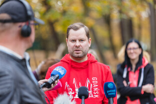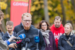 Gdańsk, Park Przymorze. Jesienne nasadzenia z Gdańską Kartą dla Drzew. W wydarzeniu udział wzięli: Aleksandra Dulkiewicz, prezydent Gdańska, Agnieszka Owczarczak, Przewodnicząca Rady Miasta Gdańska, oraz Piotr Kryszewski, Dyrektor Zarządzający ds. Zielonego Gdańska. Obecni byli też radni miejscy i dzielnicowi.