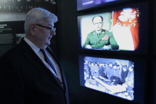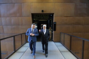 Gdańsk.Niemiecki Polityk Joschka Fischer odwiedził wystawę stałą Europejskiego Centrum Solidarności.