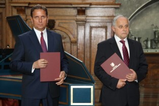 Nz. od lewej Prezydent Miasta Gdańska Paweł Adamowicz oraz Prezes Pracodawców Pomorza Zbigniew Canowiecki