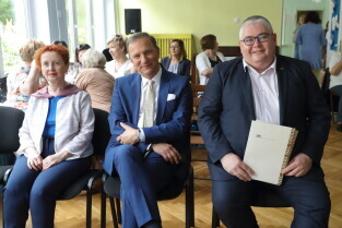 Gdańsk. Jubileusz 40-lecia Przedszkola nr 66 i nadanie imienia " Źródełko". Nz. Lucyna Szurman-Pietrzela, Samodzielne stanowisko ds. kadr dyrektorów szkół i placówek oświatowych, Prezes Gdańskiej Infrastruktury Wodociągowo-Kanalizacyjnej – Jacek Skarbek i Wiceprezydent Gdańska Piotr Kowalczuk.