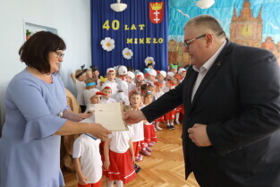Gdańsk. Jubileusz 40-lecia Przedszkola nr 66 i nadanie imienia " Źródełko". Nz. Dyrektor Danuta Śpiewak i Wiceprezydent Gdańska Piotr Kowalczuk.