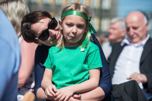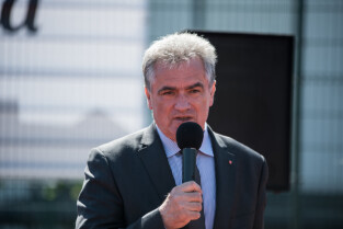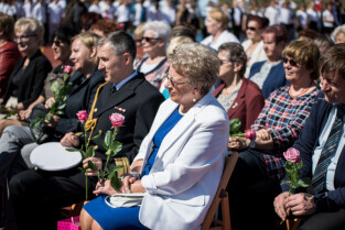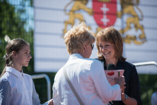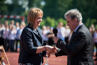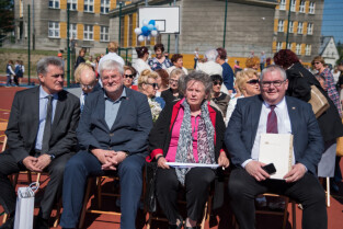 Gdańsk, ul. Reformacka. Jubileusz 60-lecia Szkoły Podstawowej nr 47 na Chełmie. Nz. od lewej, Bogdan Oleszek - Przewodniczący Rady Miasta, Radni Marek Bumblis i Teresa Wasilewska, Piotr Kowalczuk Z-ca Prezydenta ds. polityki społecznej