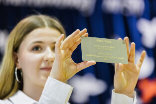 Gdańsk, ul. Grobla IV. Jubileusz 65-lecia SP nr 50 im. Emilii Plater. Nz. Radna Kamila Błaszczyk