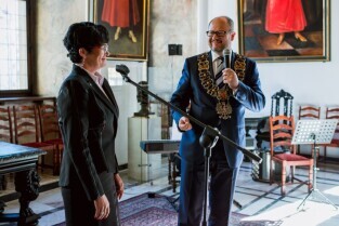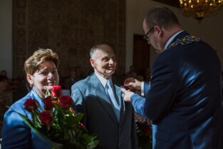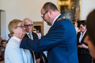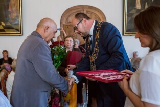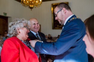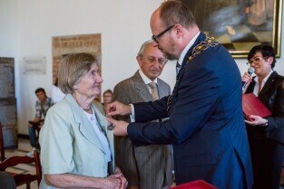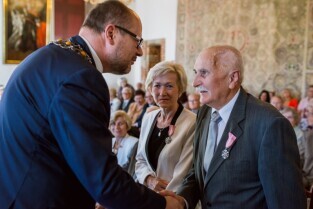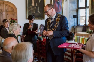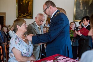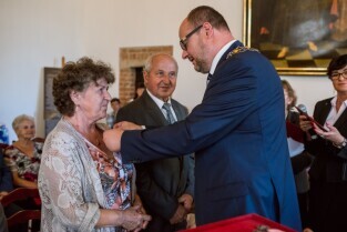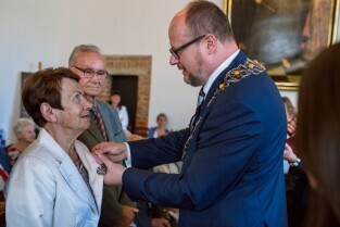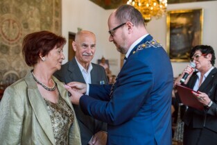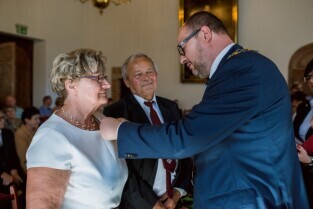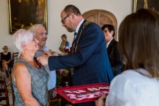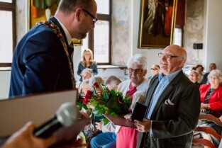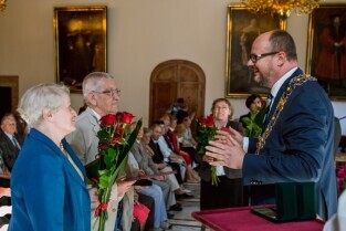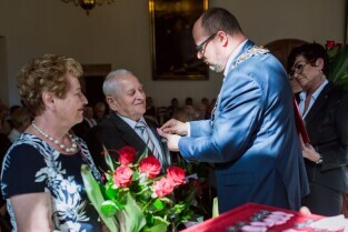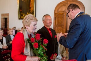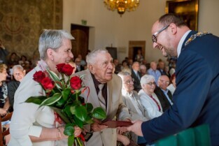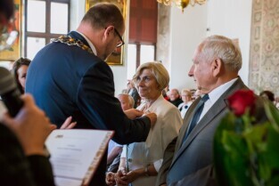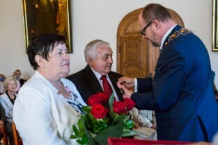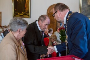 Gdańsk , Ratusz Głównego Miasta. Jubileusz Par Małżeńskich - "Złote Gody", podczas których Prezydent Gdańska Paweł Adamowicz wręczył medale za długoletnie pożycie małżeńskie.
