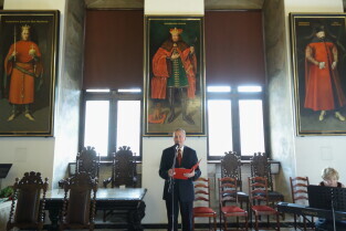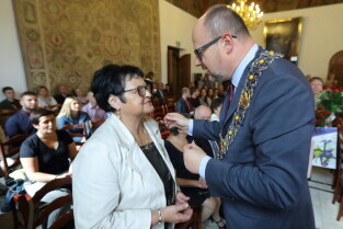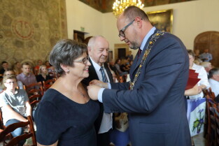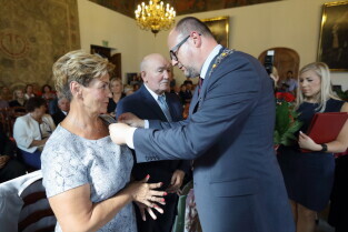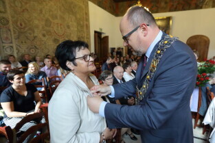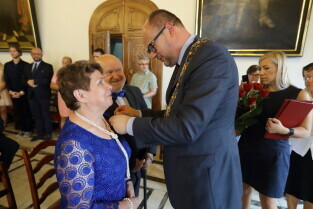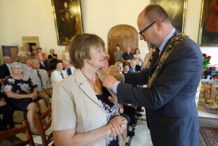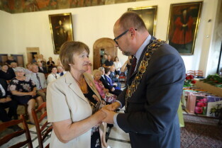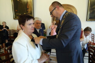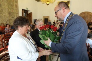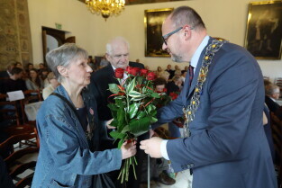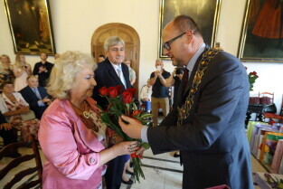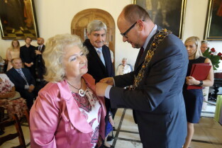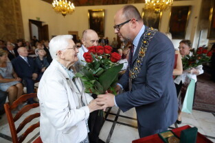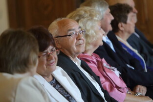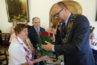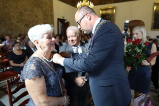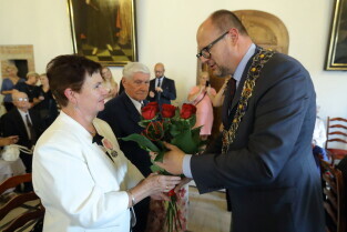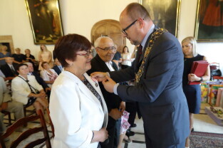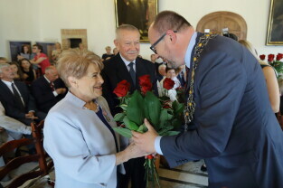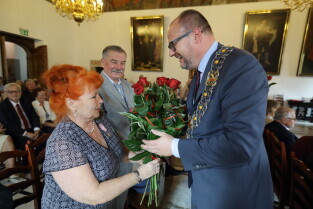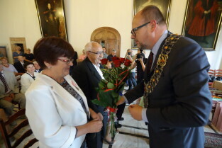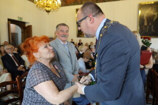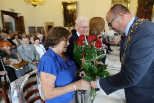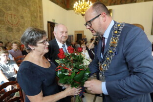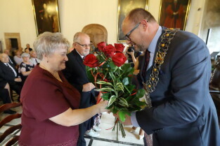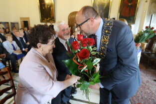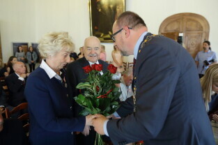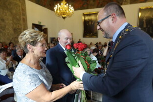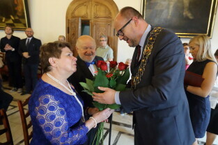Gdańsk, Ratusz Głównego Miasta. Jubileusz Par Małżeńskich - "Złote Gody", podczas których Prezydent Gdańska, Paweł Adamowicz wręczył medale za długoletnie pożycie małżeńskie.