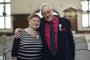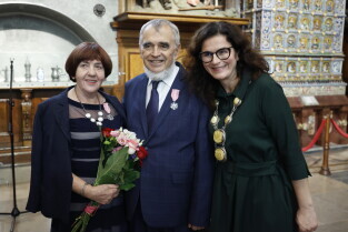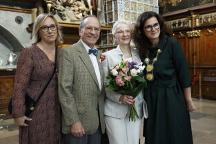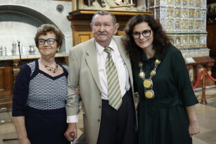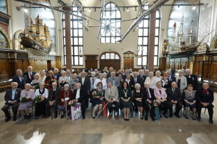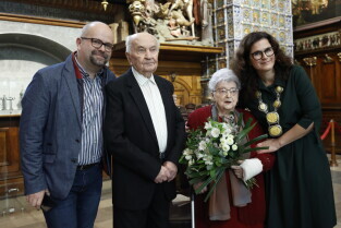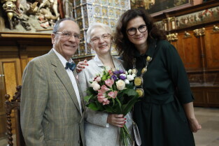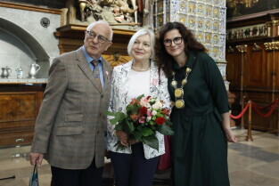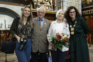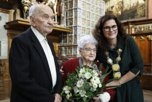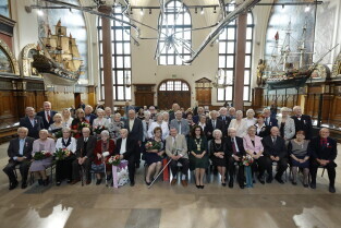 Gdańsk, Dwór Artusa. Jubileusz Par Małżeńskich - Złote Gody, podczas których Prezydent Gdańska Aleksandra Dulkiewicz wręczyła medale za długoletnie pożycie małżeńskie.