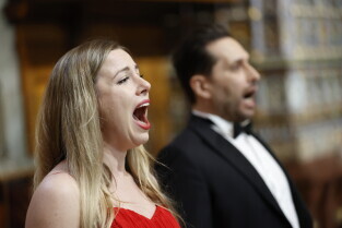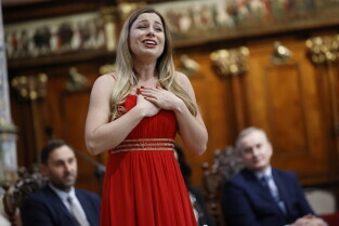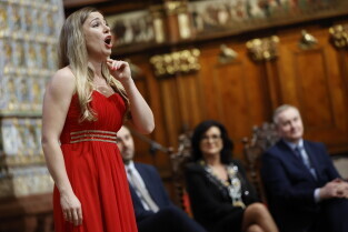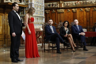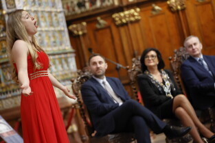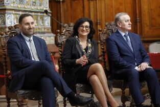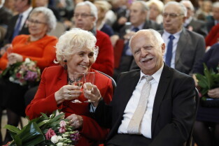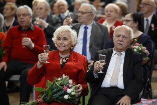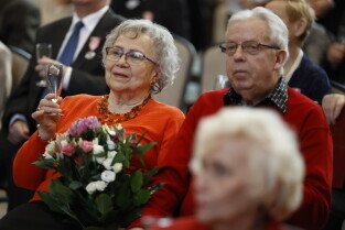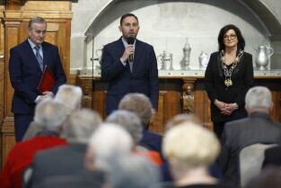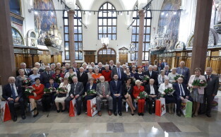 Gdańsk. Dwór Artusa. Jubileusz Par Małżeńskich - Złote Gody, podczas których wiceprezydent Gdańska Piotr Borawski i dyrektor USC Grażyna Gorczyca wręczyli medale za długoletnie pożycie małżeńskie.
