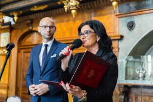 Gdańsk, Dwór Artusa. Jubileusz Par Małżeńskich - Złote Gody. Nz. dyrektor USC Grażyna Gorczyca