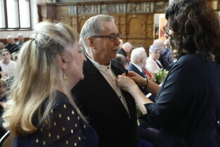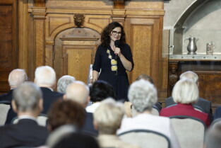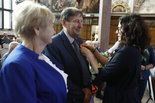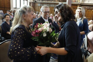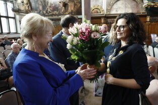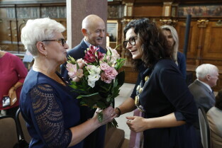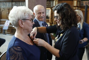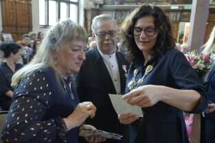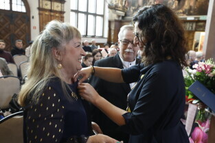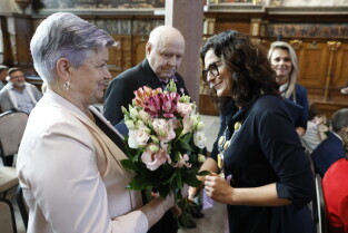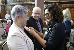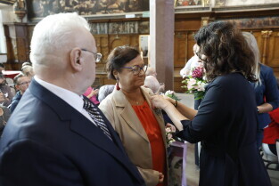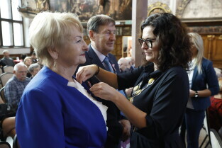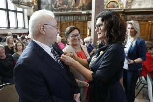 Gdańsk. Jubileusz Par Małżeńskich - Złote Gody, podczas których Prezydent Gdańska Aleksandra Dulkiewicz wręczyła medale za długoletnie pożycie małżeńskie.