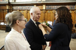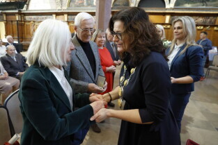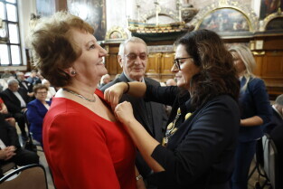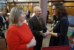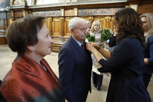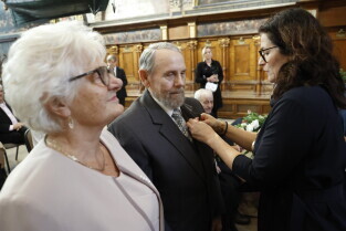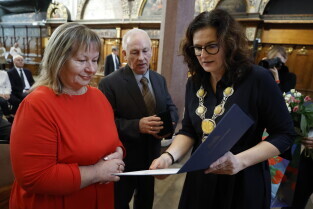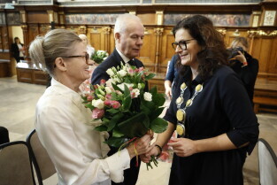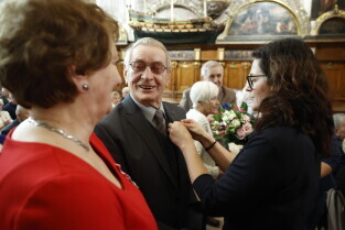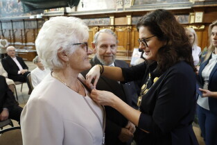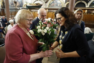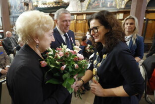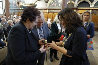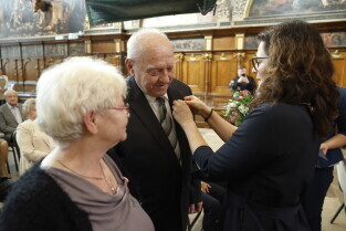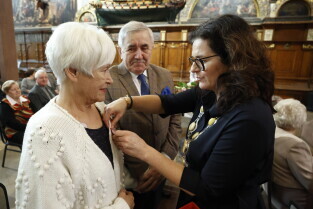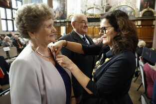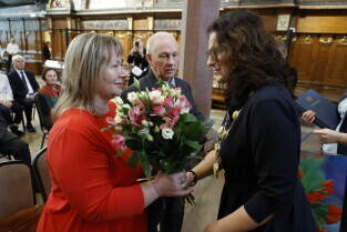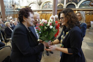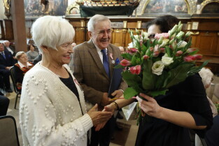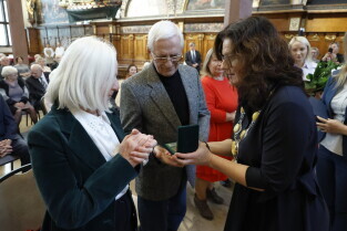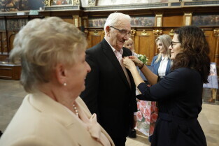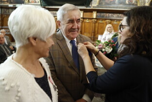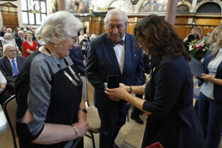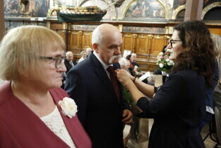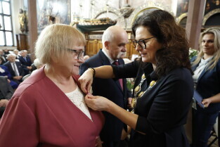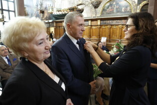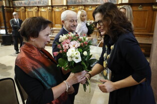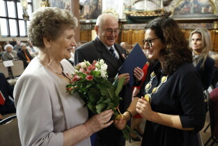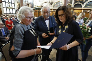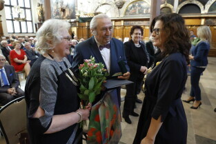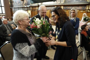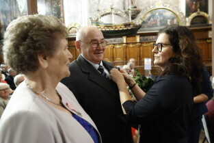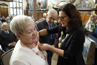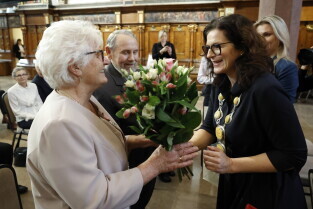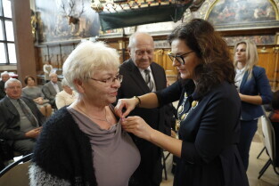 Gdańsk. Jubileusz Par Małżeńskich - Złote Gody, podczas których Prezydent Gdańska Aleksandra Dulkiewicz wręczyła medale za długoletnie pożycie małżeńskie.