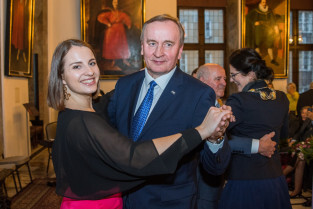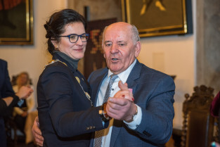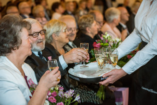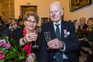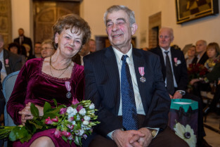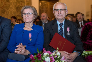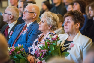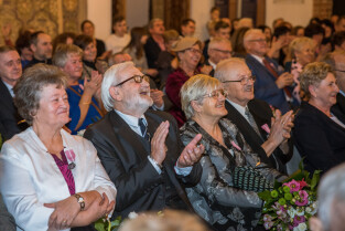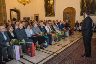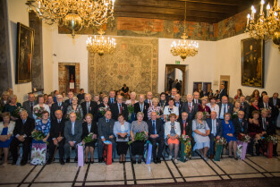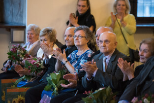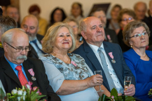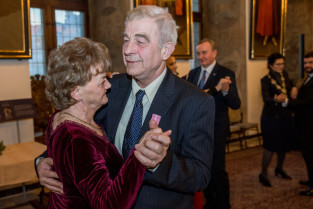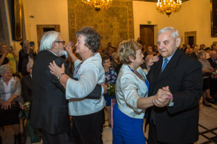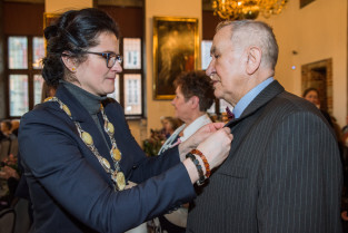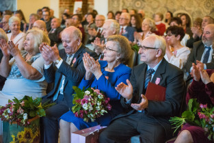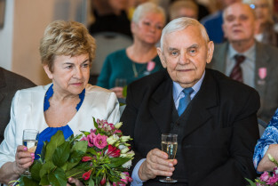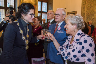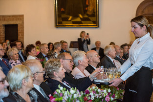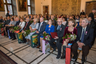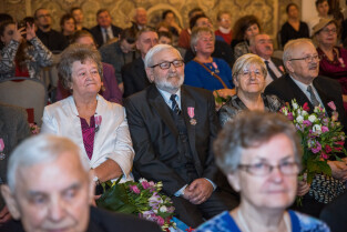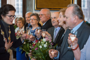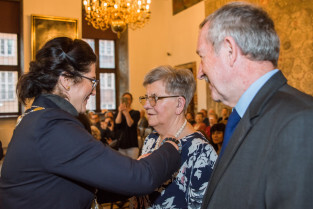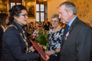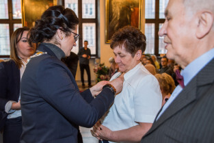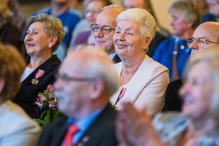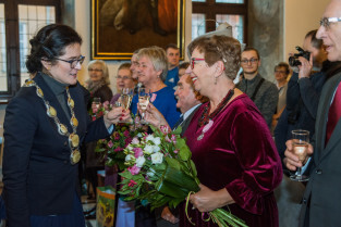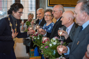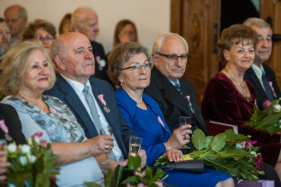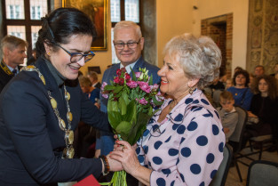 Gdańsk, Ratusz Głównego Miasta. Jubileusz Par Małżeńskich - Złote Gody, podczas których Prezydent Gdańska Aleksandra Dulkiewicz wręczyła medale za długoletnie pożycie małżeńskie