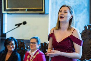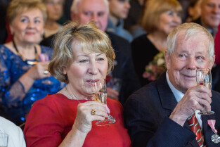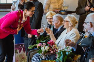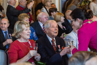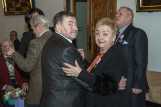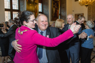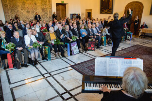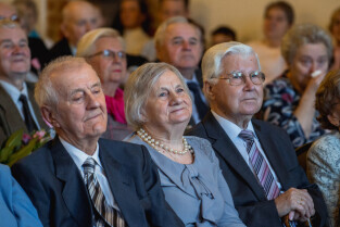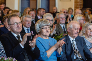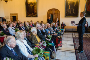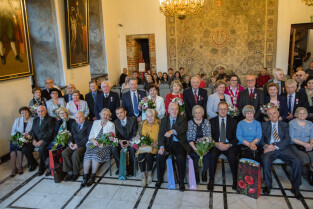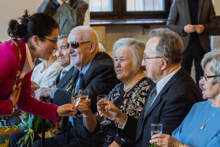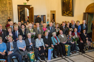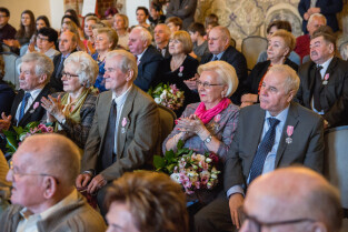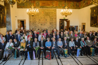 Gdańsk, Ratusz Głównego Miasta. Jubileusz Par Małżeńskich - Złote Gody, podczas których Prezydent Gdańska Aleksandra Dulkiewicz wręczyła medale za długoletnie pożycie małżeńskie