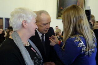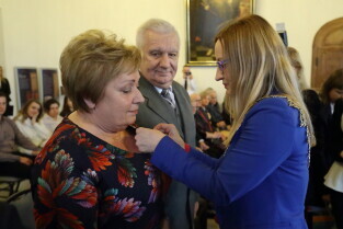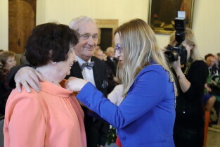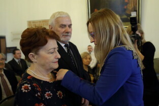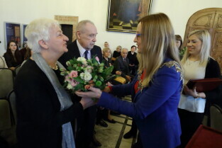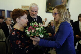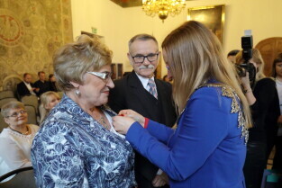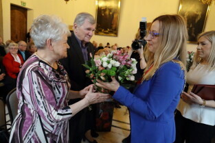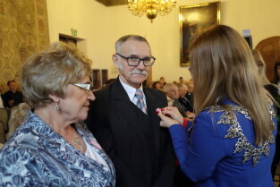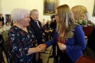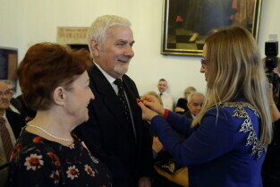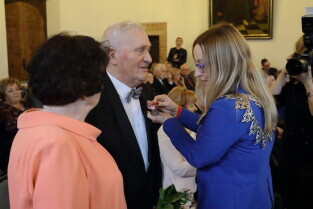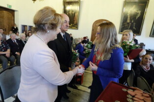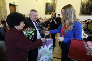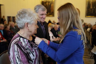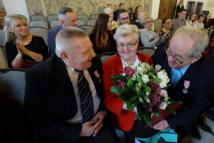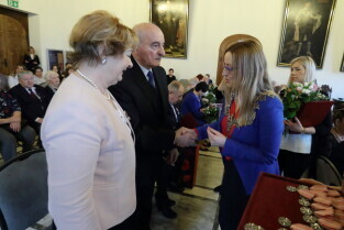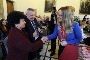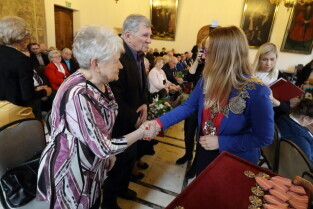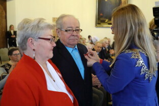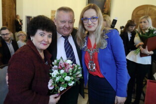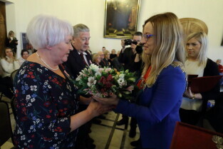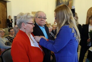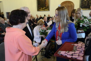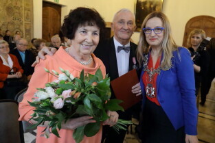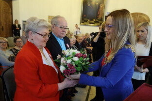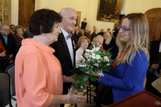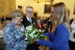 Gdańsk, Ratusz Głównego Miasta. Jubileusz Par Małżeńskich - "Złote Gody", podczas których Przewodnicząca Rady Miasta Gdańska Agnieszka Owczarczak wręczyła medale za długoletnie pożycie małżeńskie.