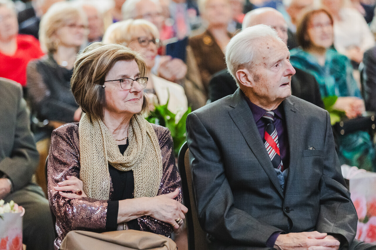 Gdańsk. Dwór Artusa. Jubileusz Par Małżeńskich - Złote Gody, podczas których w imieniu Prezydent Gdańska Aleksandry Dulkiewicz, wiceprezydent Piotr Grzelak wręczył medale za długoletnie pożycie małżeńskie.