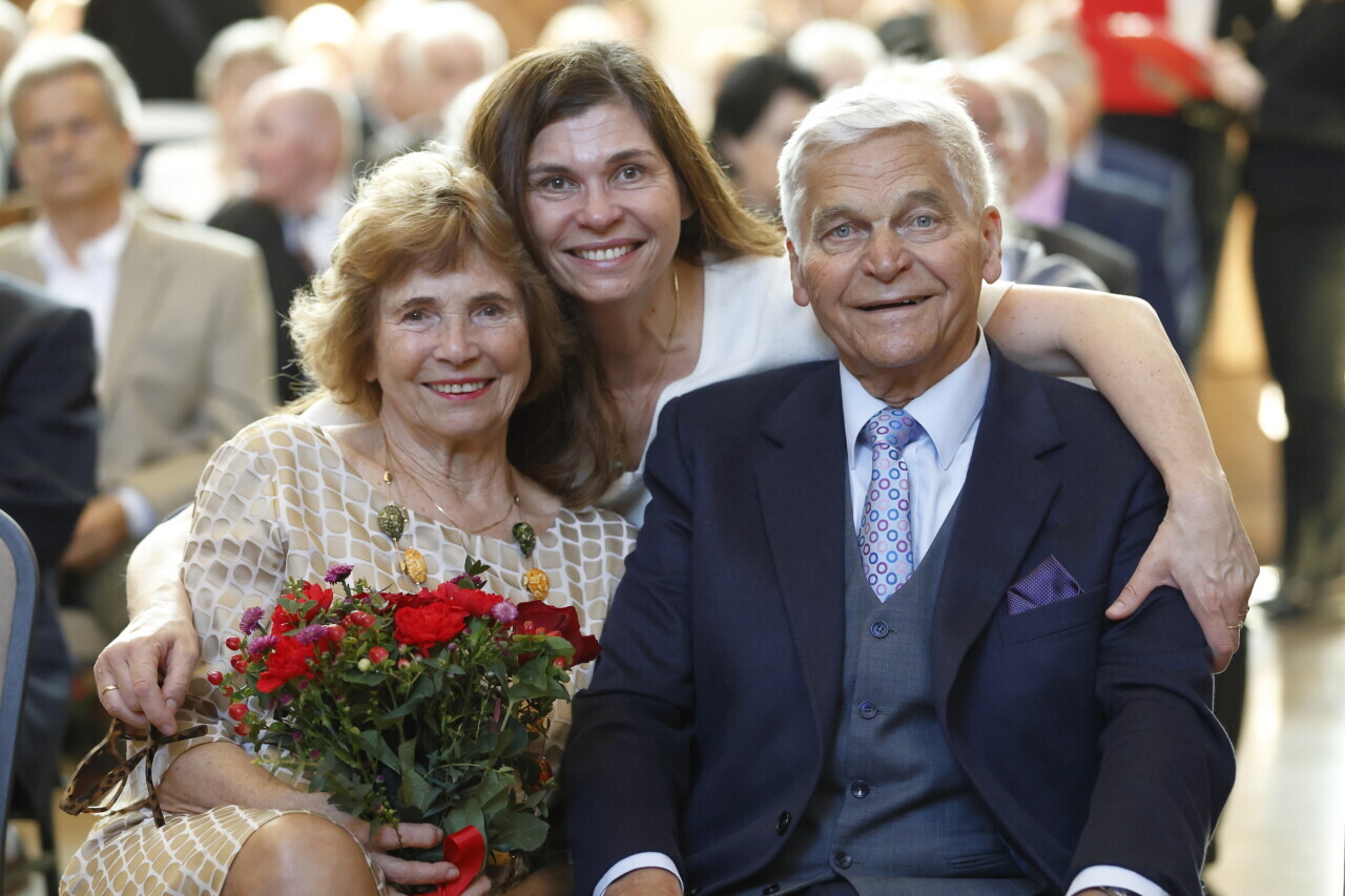 Gdańsk.Dwór Artusa. Jubileusz Par Małżeńskich - Złote Gody, podczas których Prezydent Gdańska Aleksandra Dulkiewicz wręczyła medale za długoletnie pożycie małżeńskie.