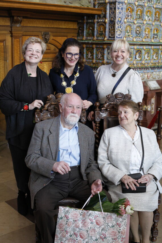 Gdańsk.Dwór Artusa. Jubileusz Par Małżeńskich - Złote Gody, podczas których Prezydent Gdańska Aleksandra Dulkiewicz wręczyła medale za długoletnie pożycie małżeńskie.