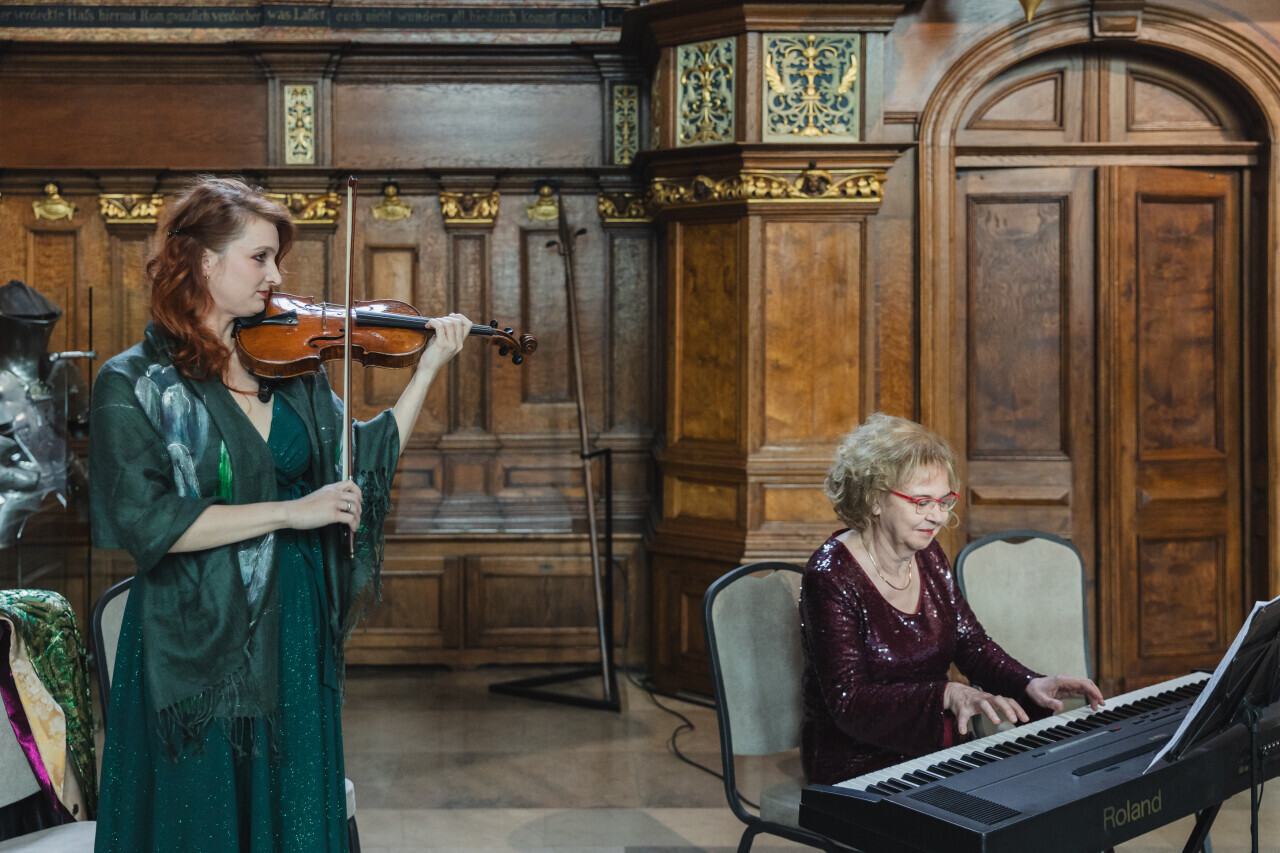 Gdańsk.Dwór Artusa. Jubileusz Par Małżeńskich - Złote Gody, podczas których Prezydent Gdańska Aleksandra Dulkiewicz wręczyła medale za długoletnie pożycie małżeńskie.