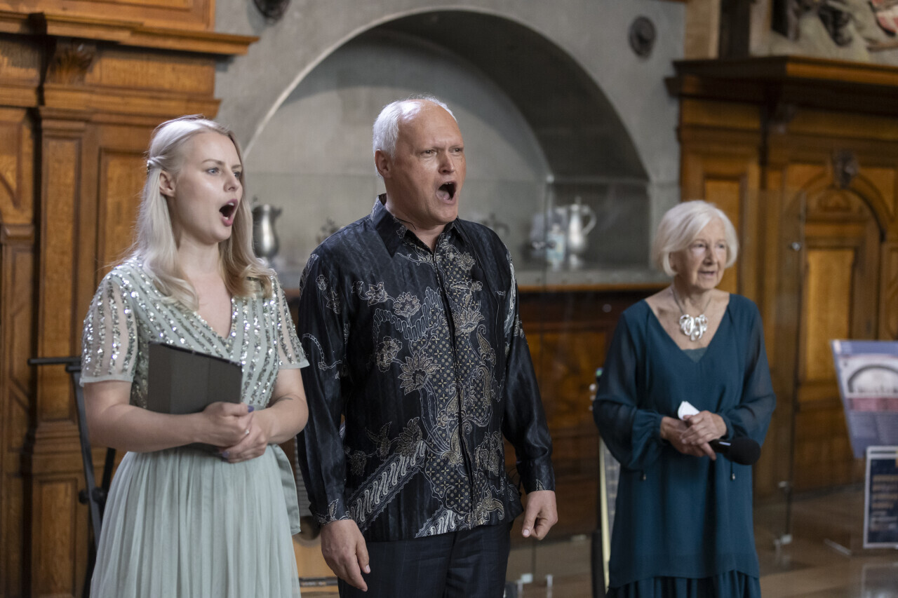 Gdańsk.Dwór Artusa. Jubileusz Par Małżeńskich - Złote Gody, podczas których Prezydent Gdańska Aleksandra Dulkiewicz wręczyła medale za długoletnie pożycie małżeńskie.
