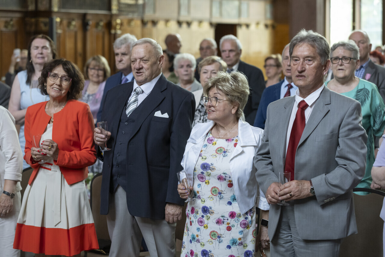 Gdańsk. Dwór Artusa. Jubileusz Par Małżeńskich - Złote Gody, podczas których Prezydent Gdańska Aleksandra Dulkiewicz wręczyła medale za długoletnie pożycie małżeńskie.