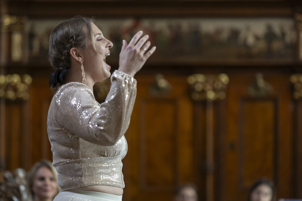 Gdańsk. Dwór Artusa. Jubileusz Par Małżeńskich - Złote Gody, podczas których Prezydent Gdańska Aleksandra Dulkiewicz wręczyła medale za długoletnie pożycie małżeńskie.