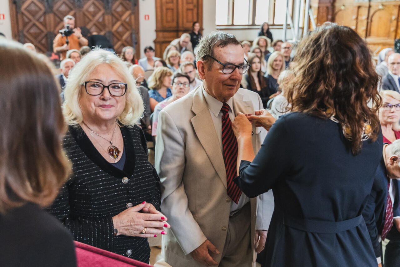 Gdańsk. Dwór Artusa. Jubileusz Par Małżeńskich - Złote Gody, podczas których Prezydent Gdańska Aleksandra Dulkiewicz wręczyła medale za długoletnie pożycie małżeńskie.