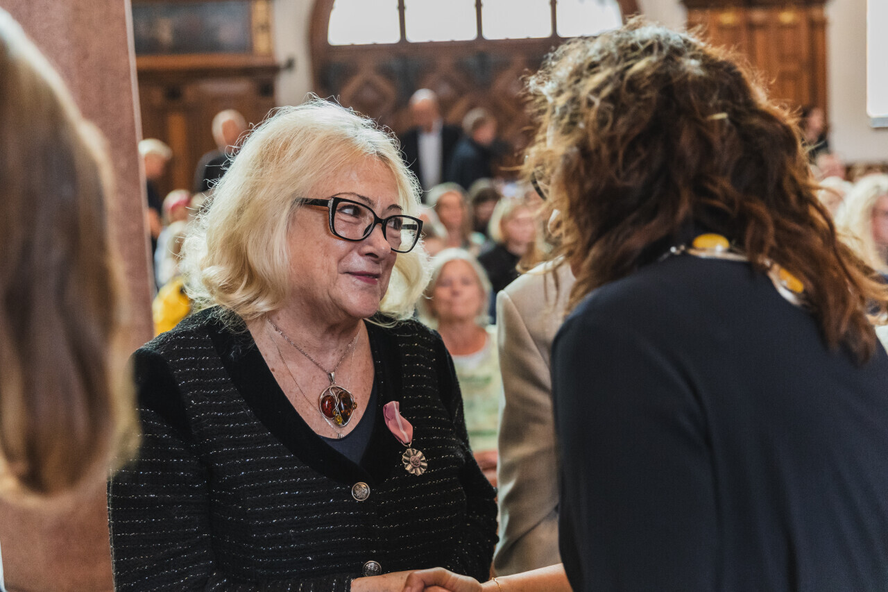 Gdańsk. Dwór Artusa. Jubileusz Par Małżeńskich - Złote Gody, podczas których Prezydent Gdańska Aleksandra Dulkiewicz wręczyła medale za długoletnie pożycie małżeńskie.