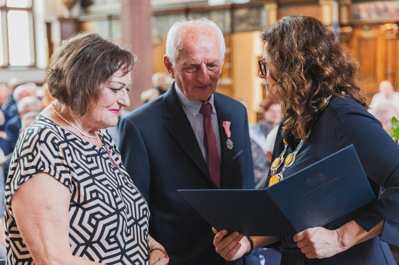 Gdańsk. Dwór Artusa. Jubileusz Par Małżeńskich - Złote Gody, podczas których Prezydent Gdańska Aleksandra Dulkiewicz wręczyła medale za długoletnie pożycie małżeńskie.
