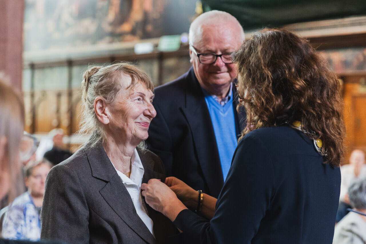 Gdańsk. Dwór Artusa. Jubileusz Par Małżeńskich - Złote Gody, podczas których Prezydent Gdańska Aleksandra Dulkiewicz wręczyła medale za długoletnie pożycie małżeńskie.