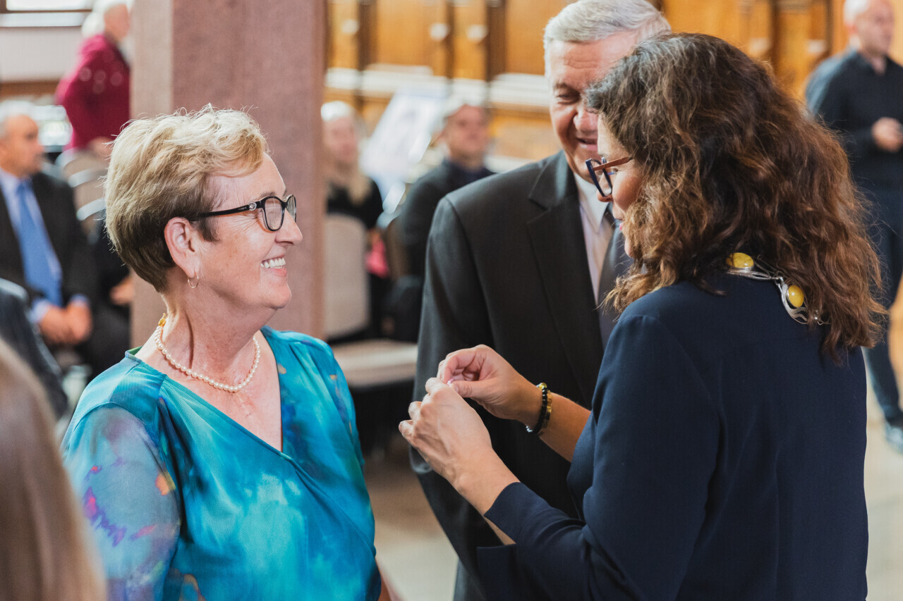 Gdańsk. Dwór Artusa. Jubileusz Par Małżeńskich - Złote Gody, podczas których Prezydent Gdańska Aleksandra Dulkiewicz wręczyła medale za długoletnie pożycie małżeńskie.