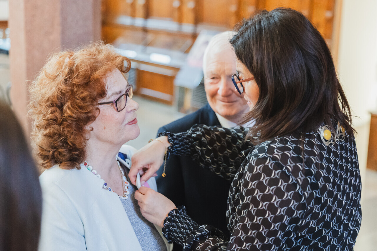 Gdańsk. Dwór Artusa. Jubileusz Par Małżeńskich - Złote Gody, podczas których Prezydent Gdańska Aleksandra Dulkiewicz wręczyła medale za długoletnie pożycie małżeńskie