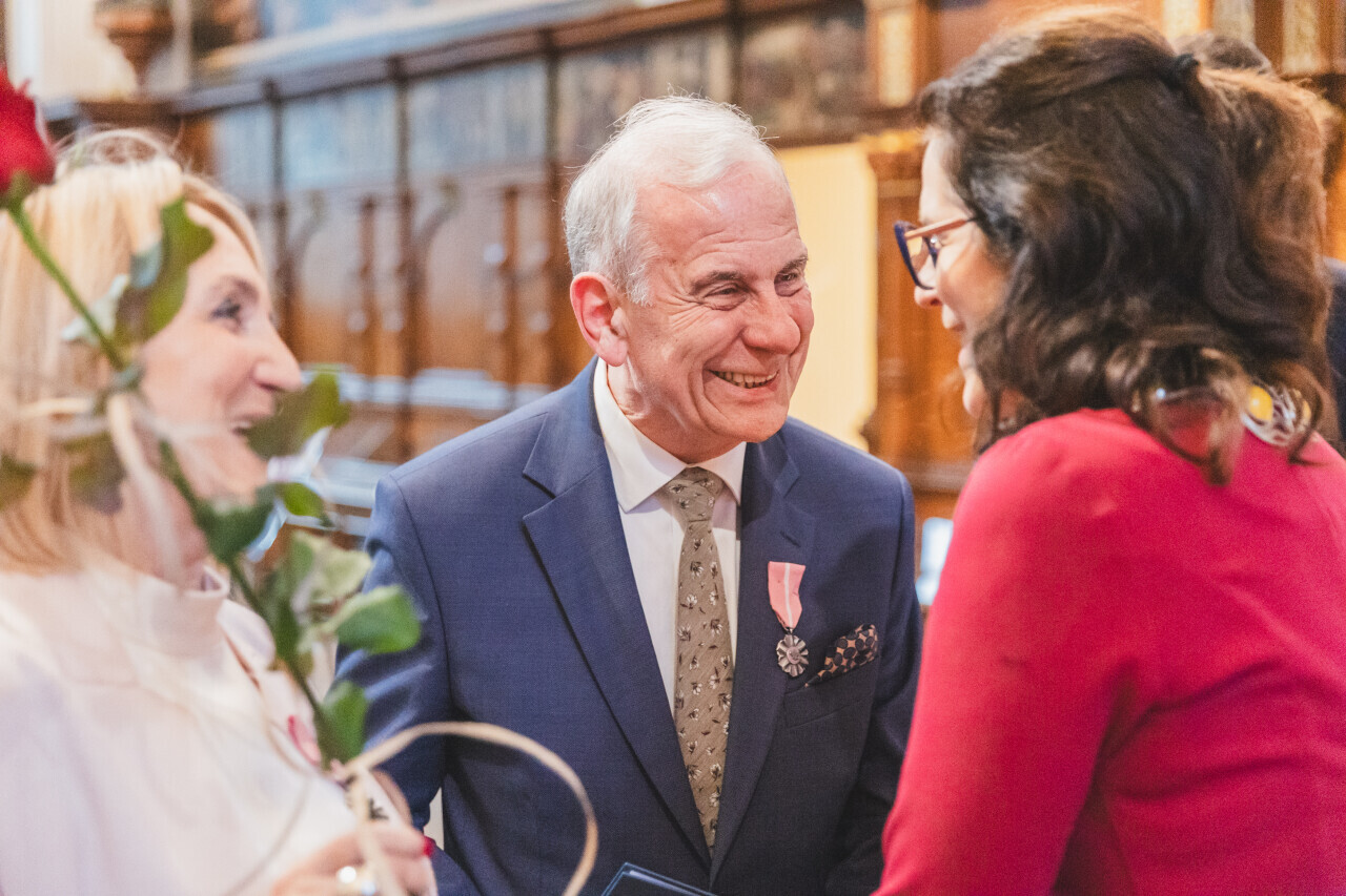 Gdańsk. Dwór Artusa. Jubileusz Par Małżeńskich - Złote Gody, podczas których Prezydent Gdańska Aleksandra Dulkiewicz wręczyła medale za długoletnie pożycie małżeńskie