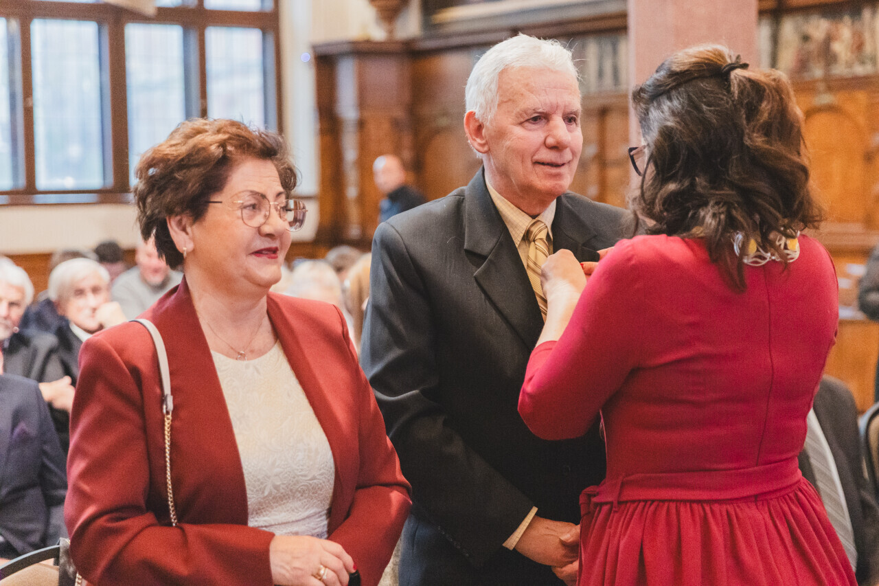 Gdańsk. Dwór Artusa. Jubileusz Par Małżeńskich - Złote Gody, podczas których Prezydent Gdańska Aleksandra Dulkiewicz wręczyła medale za długoletnie pożycie małżeńskie