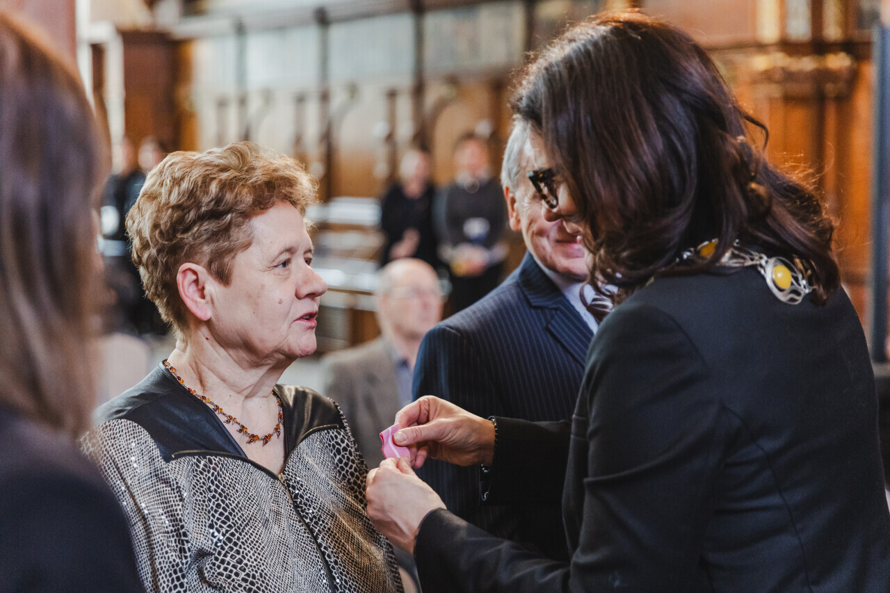 Gdańsk. Dwór Artusa. Jubileusz Par Małżeńskich - Złote Gody, podczas których Prezydent Gdańska Aleksandra Dulkiewicz wręczyła medale za długoletnie pożycie małżeńskie