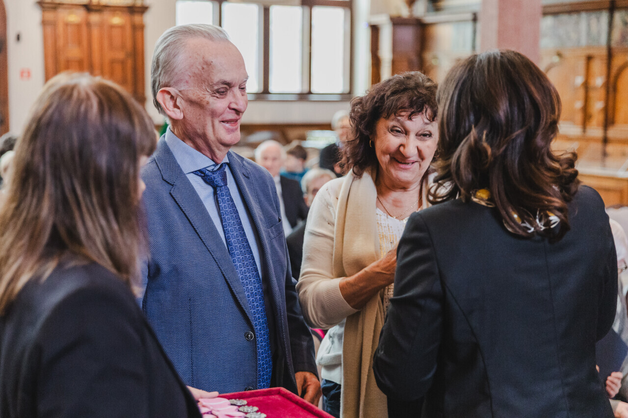 Gdańsk. Dwór Artusa. Jubileusz Par Małżeńskich - Złote Gody, podczas których Prezydent Gdańska Aleksandra Dulkiewicz wręczyła medale za długoletnie pożycie małżeńskie