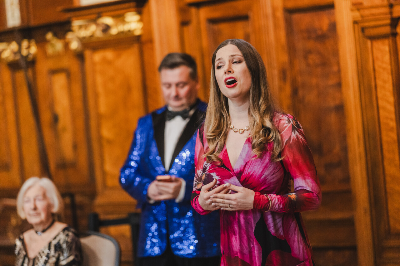 Gdańsk. Dwór Artusa. Jubileusz Par Małżeńskich - Złote Gody, podczas których Prezydent Gdańska Aleksandra Dulkiewicz wręczyła medale za długoletnie pożycie małżeńskie