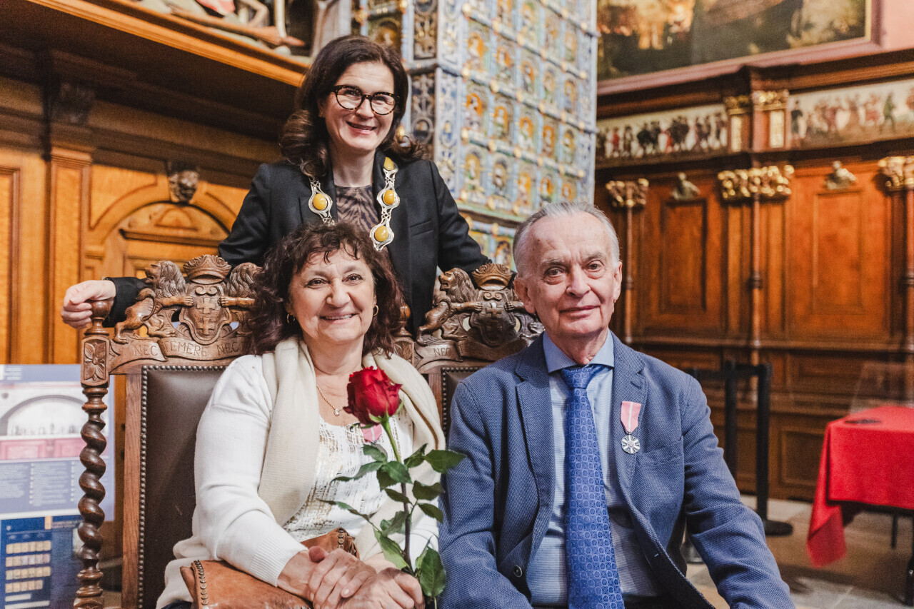 Gdańsk. Dwór Artusa. Jubileusz Par Małżeńskich - Złote Gody, podczas których Prezydent Gdańska Aleksandra Dulkiewicz wręczyła medale za długoletnie pożycie małżeńskie