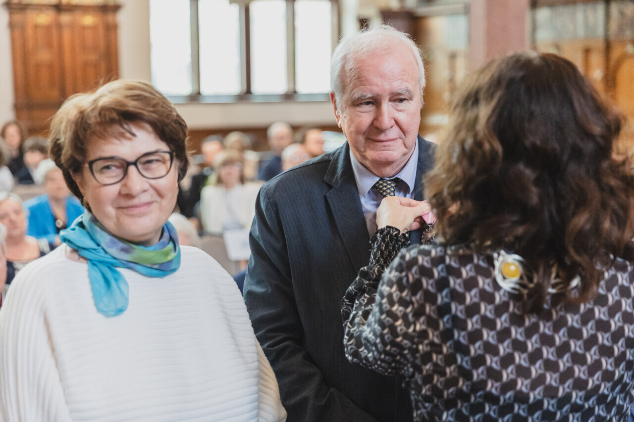 Gdańsk. Dwór Artusa. Jubileusz Par Małżeńskich - Złote Gody, podczas których Prezydent Gdańska Aleksandra Dulkiewicz wręczyła medale za długoletnie pożycie małżeńskie