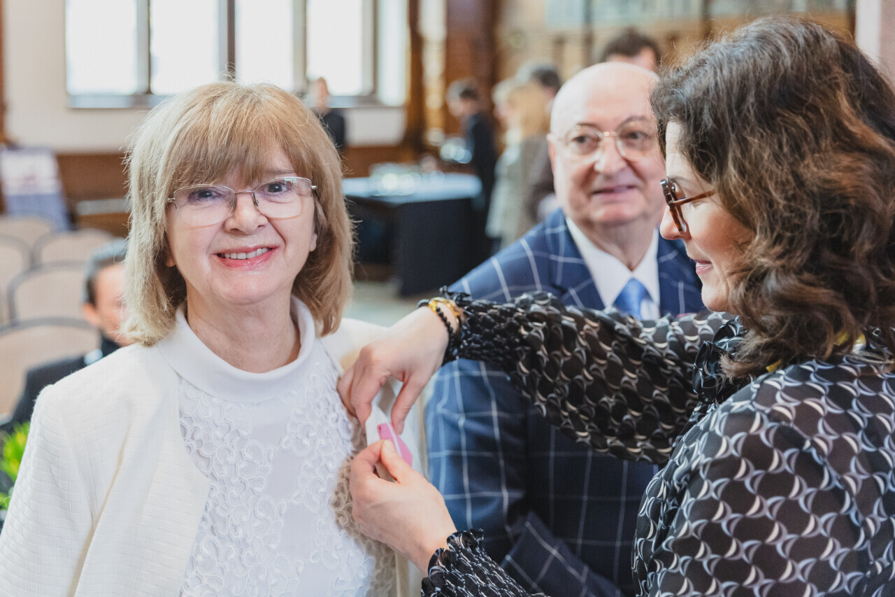 Gdańsk. Dwór Artusa. Jubileusz Par Małżeńskich - Złote Gody, podczas których Prezydent Gdańska Aleksandra Dulkiewicz wręczyła medale za długoletnie pożycie małżeńskie