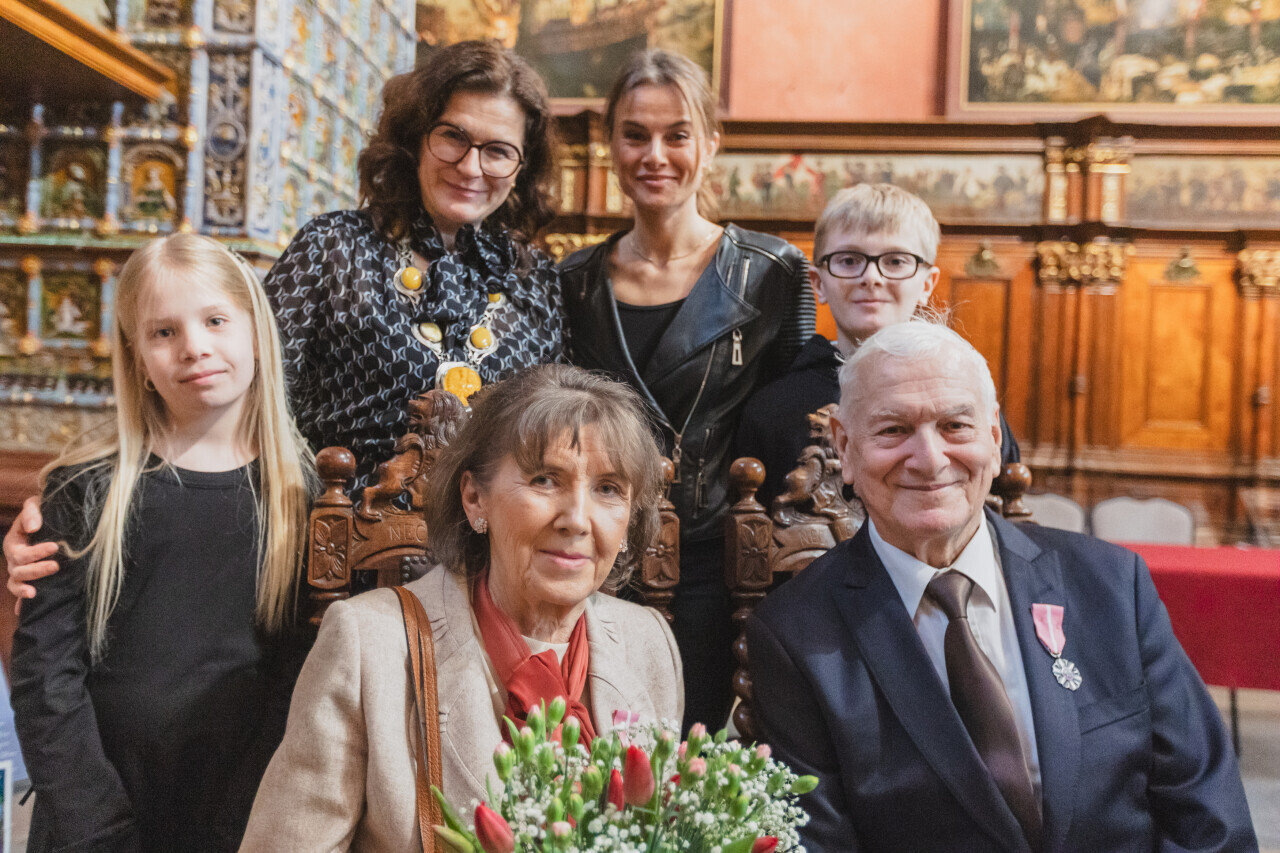 Gdańsk. Dwór Artusa. Jubileusz Par Małżeńskich - Złote Gody, podczas których Prezydent Gdańska Aleksandra Dulkiewicz wręczyła medale za długoletnie pożycie małżeńskie