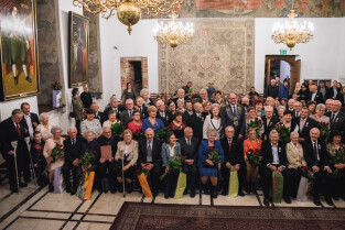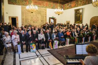 Gdańsk, Ratusz Głównego Miasta. Jubileusz Par Małżeńskich - "Złote Gody", podczas których Prezydent Gdańska, Paweł Adamowicz wręczył medale za długoletnie pożycie małżeńskie