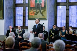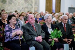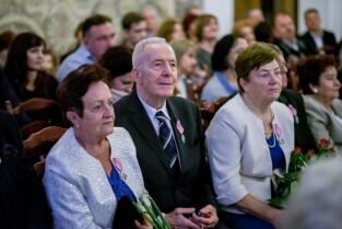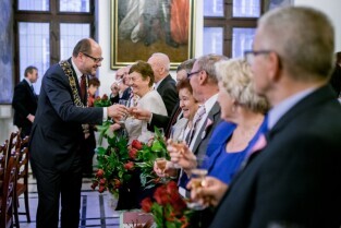 Gdańsk, Ratusz Głównego Miasta. Jubileusz Par Małżeńskich - "Złote Gody", podczas których Prezydent Gdańska Paweł Adamowicz wręczył medale za długoletnie pożycie małżeńskie.