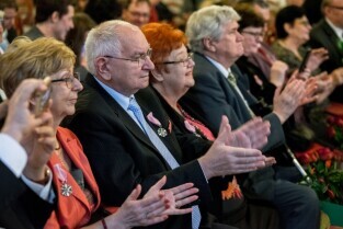 Gdańsk, Ratusz Głównego Miasta. Jubileusz Par Małżeńskich - "Złote Gody", podczas których Przewodniczący Rady Miasta, Bogdan Oleszek w imieniu Prezydenta Gdańska Pawła Adamowicza wręczył medale za długoletnie pożycie małżeńskie.