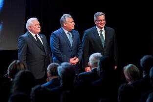 Gala jubileuszu 25-lecia Pracodawców Pomorza i urodziny Lecha Wałęsy (Nz) z prezydentem Aleksandrem Kwaśniewskim i Bronisławem Komorowskim.