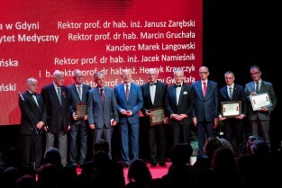 Gala jubileuszu 25-lecia Pracodawców Pomorza i urodziny Lecha Wałęsy. Akademia Morska w Gdyni. Rektor prof. dr hab. inż. Janusz Zarębski