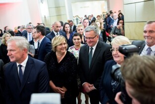 Gala jubileuszu 25-lecia Pracodawców Pomorza i urodziny Lecha Wałęsy. Nz Prezydent Komorowski z żoną Anną.