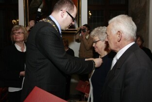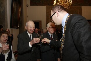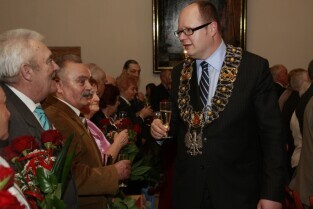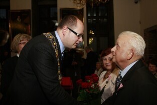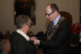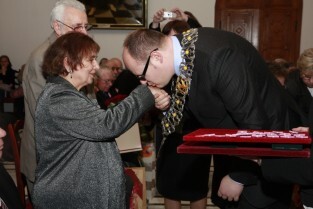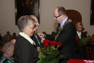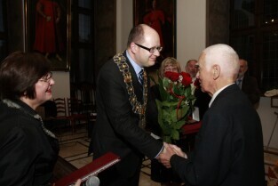 Gdańsk, Ratusz Głównego Miasta. Jubilaci obchodzący 60-, 55- i 50-lecie pożycia małżeńskiego zostali odznaczeni przyznanymi specjalnie z tej okazji medalami przez Prezydenta Gdańska Pawła Adamowicza.