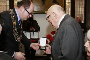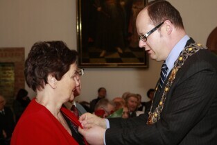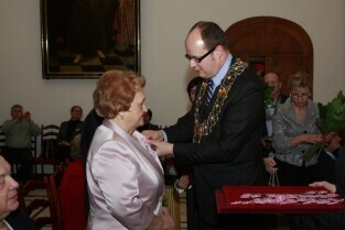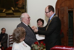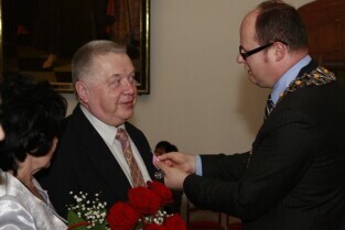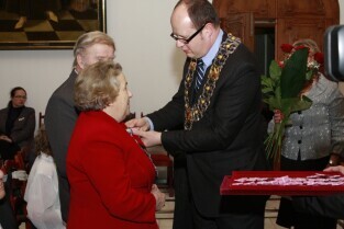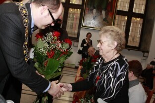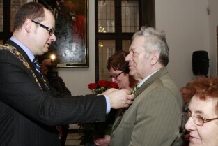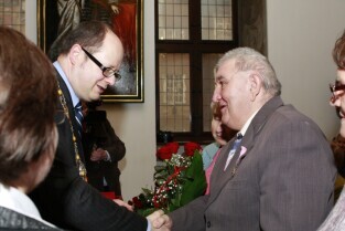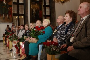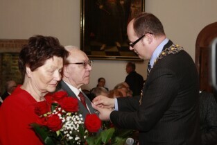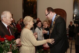 Gdańsk, Ratusz Głównego Miasta. Jubilaci obchodzący 65-, 60-, 55- i 50-lecie pożycia małżeńskiego zostali odznaczeni przyznanymi specjalnie z tej okazji medalami przez Prezydenta Gdańska Pawła Adamowicza.