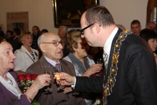 Gdańsk, Ratusz Głównomiejski. Jubilatów obchodzących 60-, 55- i 50-lecie pożycia małżeńskiego okolicznościowymi medalami odznaczył Prezydent Gdańska Paweł Adamowicz.