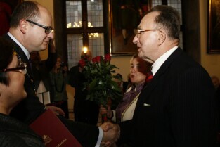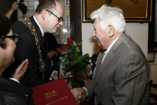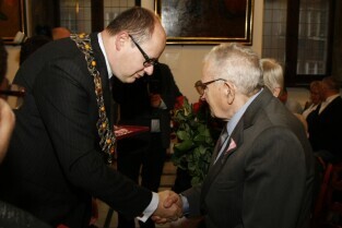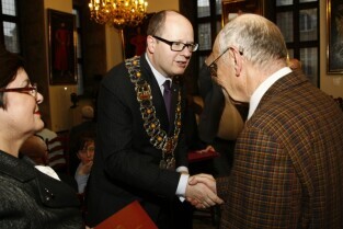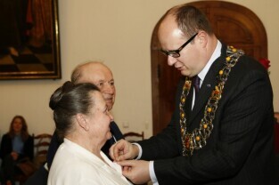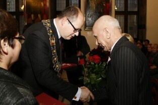 Gdańsk, Ratusz Głównomiejski. Uroczystość podczas której prezydent Gdańska Paweł Adamowicz wręczył medale za długoletnie pożycie małżeńskie.