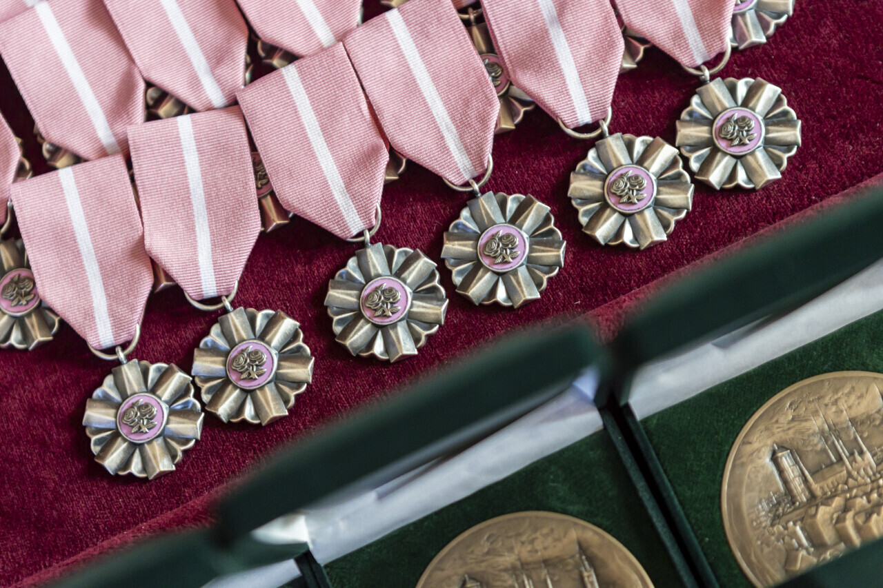 Gdańsk. Piotr Grzelak, Zastępca prezydent Gdańska ds. zrównoważonego rozwoju i gospodarki, wręczył medale za długoletnie pożycie małżeńskie 35 parom, podczas uroczystości, która tradycyjnie odbyła się w zabytkowych wnętrzach Dworu Artusa.
